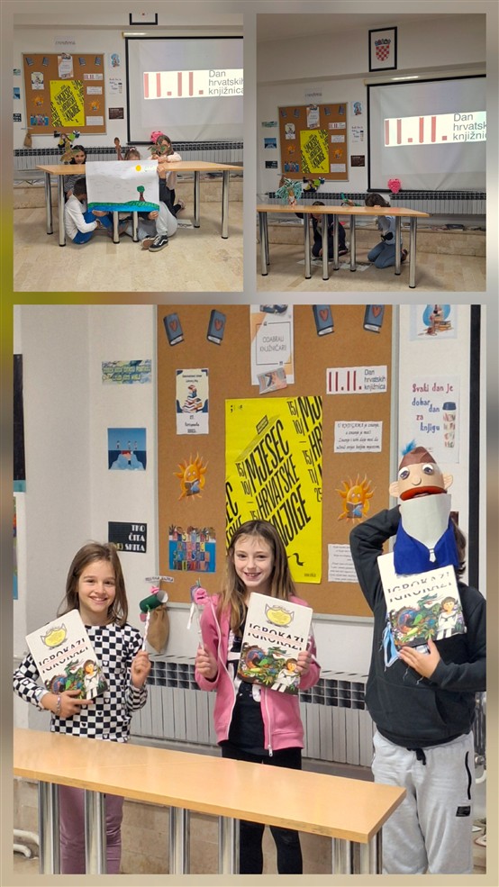 Zahvaljujući 4.c, 4.d i 4.e razredu s učiteljicama Elom, Katarinom i Josipom, ovogodišnji Dan hrvatskih knjižnica obilježili smo interpretacijama lektire na malo drugačiji način. Lijepo je kada nam u knjižnici gostuju poznati književnici, ali je još ljepše kada naši četvrtaši majstorski predstave pročitane lektire i oduševe nas svojim idejama i originalnošću!