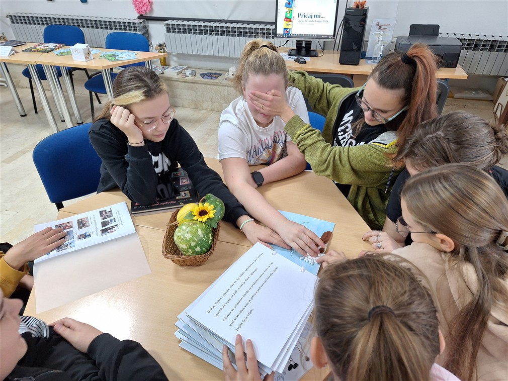 2010. godine su školski knjižničari Primorsko-goranske županije organizirali i proveli humanitarnu akciju „KNJIŽNIČARI KNJIŽNICI!“. Cilj akcije bio je izraditi što veći broj taktilnih slikovnica za korisnike Prve dječje knjižnice za djecu s oštećenjem vida koja djeluje pri OŠ Pećine u Rijeci. Taktilna slikovnica je posebna slikovnica koja se čita dodirom, na tržištu ih je malo i zaista su veoma skupe pa su većinom nedostupne djeci s oštećenjem vida. A svi imamo pravo na čitanje! Knjižničarka OŠ „Sveti Matej“ zamolila je učiteljicu Jadranku Novak za pomoć i to je bio početak prekrasne priče te suradnje i prijateljstva među našim knjižnicama koji traju i dan danas! Učiteljica Jadranka proteklih je 15 godina izradila 15 taktilnih slikovnica i omogućilamališanima s oštećenjem vida čitanje i uživanje u nekim od najznačajnijih djela domaće i strane dječje književnosti.