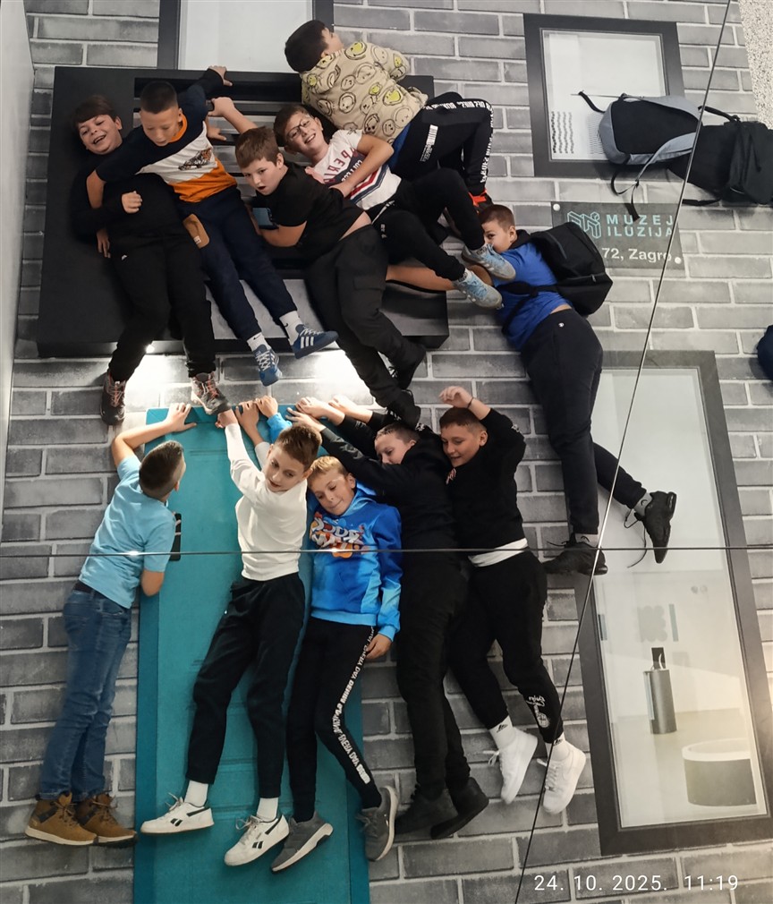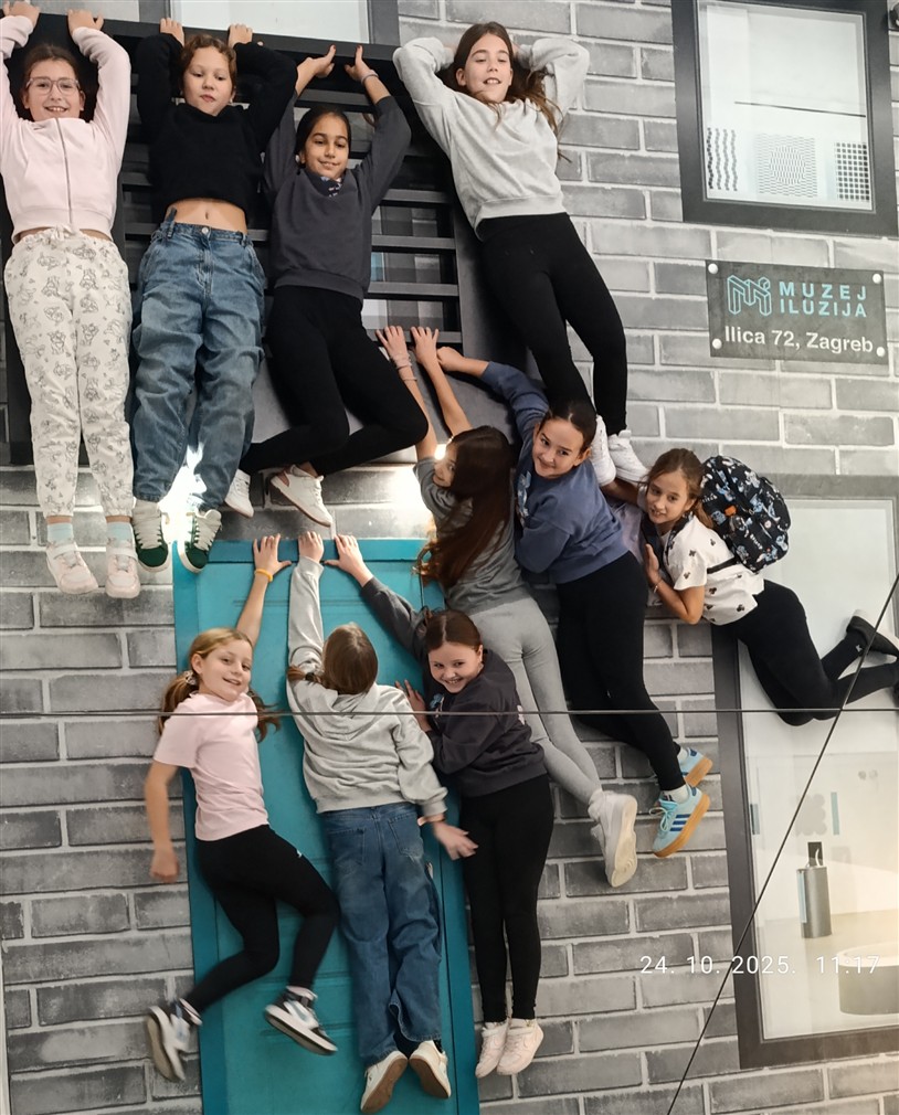 Kraj listopada 2025. četvrtašima b i d razrednoga odjela učinio se savršenim trenutkom da posjete glavni grad domovine. Po dolasku u Zagreb prvo nam je odredište bio Muzej iluzija u kojemu smo se ludo zabavili, ali i saznali da iza magije iluzija stoje mnogi znanstveni fenomeni, što nas je potaknulo na razmišljanje o tome kako naš mozak percipira stvarnost. Zatim smo se posvetili obilasku najvažnijih znamenitosti grada. Grički top pozdravio nas je točno u podne, baš na vrijeme da upoznamo povijesnu priču o Gradecu i Kaptolu i saznamo zašto je Zagreb u prošlosti trebao najkraću uspinjaču na svijetu. Posvetili smo se i proučavanju Katedrale te upoznavanju Markova trga kao lokaliteta s kojega djeluju institucije domovine. Jesen nam se pokazala u punome sjaju jer smo, osim zlatnožutoga lišća koje je šuškalo pod našim nogama dok smo prolazili Maksimirskim parkom, doživjeli sve moguće vremenske prilike: od guste magle koja nas je pratila putem kroz gorske krajeve, do sunčanoga vremena koje nas je dočekalo u Zagrebu, a koje se potom pretvorilo u kratkotrajni pljusak s tučom od koje smo se skrivali pod krovovima zgrada zagrebačke Ilice. Trebali smo na vrijeme poslušati gospodina odjevenoga u lik Nikole Tesle koji nas je na glavnome trgu, pokraj bana Jelačića na konju, upozorio da upravo za 92 sekunde počinje kiša. Ipak, vremenske (ne)prilike okrenule su se u našu korist i dozvolile nam da glavni grad domovine upoznamo u punome sjaju. Izlet smo zapečatili nezaobilaznim posjetom Zoološkome vrtu. U Viškovo smo se vratili puni dojmova i sa željom za ponovnim posjetom glavnome gradu domovine.