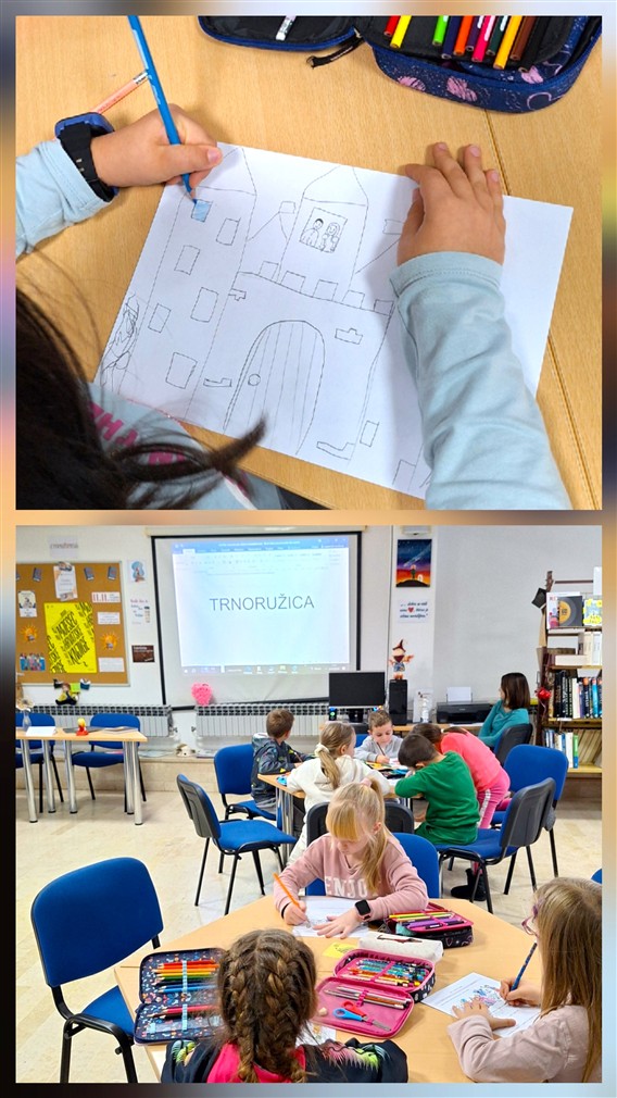 Znamo da su u daaaavna vremena stariji pričali bajke mlađima uz treperavu svjetlost vatre dok je pucketanje drva pratilo ritam priče. Zato se prvašići (i učiteljice) udobno smjeste u krug pa uz toplinu zamišljene vatre prate priču knjižničarke o Trnoružici, kralju, kraljici, dobrim vilama, hrabrom kraljeviću na bijelom konju i pobjedi dobra nad zlom. Pričamo priču, ali i učimo što su bajke, kada i kako su nastale, tko ih piše i zašto je bitno zagrliti se uz svoje najmilije (mame, tate, bake, djedove…) i uživati u zajedništvu i čitanju. Kada završimo pripovijedanje, gasimo imaginarnu vatricu i prebacujemo se u 21. stoljeće pa rješavamo kviz u Wordwallu, kao i lagani lektirni listić pomoću kojeg ponovimo sve što smo u „BAJKAONICI“ naučili.