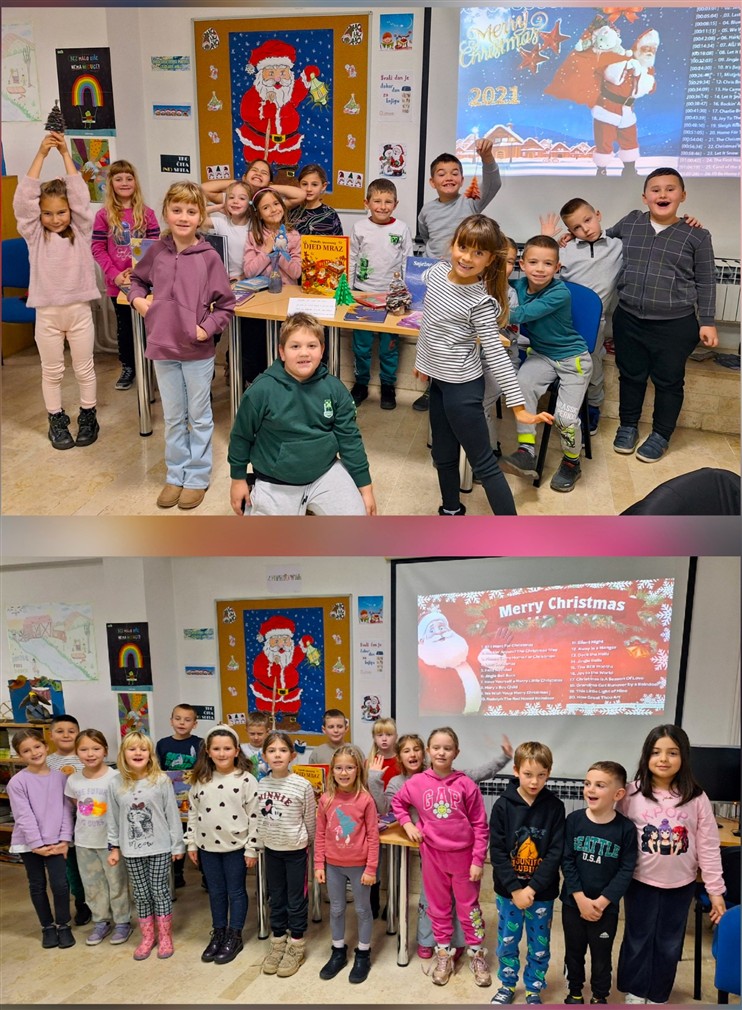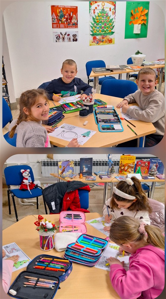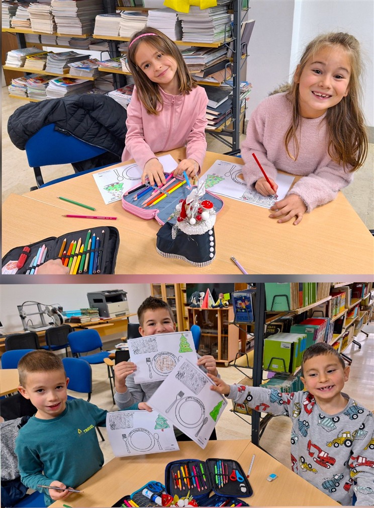 Krenuli smo pričanjem priče Drvce koje je pronašlo svoj dom uz pomoć šumskih prijatelja”, lijepim božićnim tekstom koji na djeci razumljiv i nježan način govorio o dobroti, prijateljstvu i brizi za prirodu i okoliš. Prvašići su s velikim zanimanjem slušali priču, prepoznavali njezine poruke te se rado uključivali u razgovor, dijeleći svoja razmišljanja i osjećaje. Nakon čitanja slijedilo je crtanje — vrijeme za boje, maštu i osobni doživljaj blagdana. Prvašići su ukrašavali božićnu jelku i crtali svoje najdraže božićno jelo, a svaki je crtež nosio dio njihove radosti i mašte. Aktivnost se lijepo nadovezala na naša prijašnja druženja u kojima smo zajedno čitali bajke i razgovarali o vrijednosti i potrebi čuvanja hrane. Kroz crteže i razgovor prvašići su pokazali kako blagdanski običaji mogu ići ruku pod ruku s brigom za okoliš i svakodnevnim malim, ali važnim odlukama.