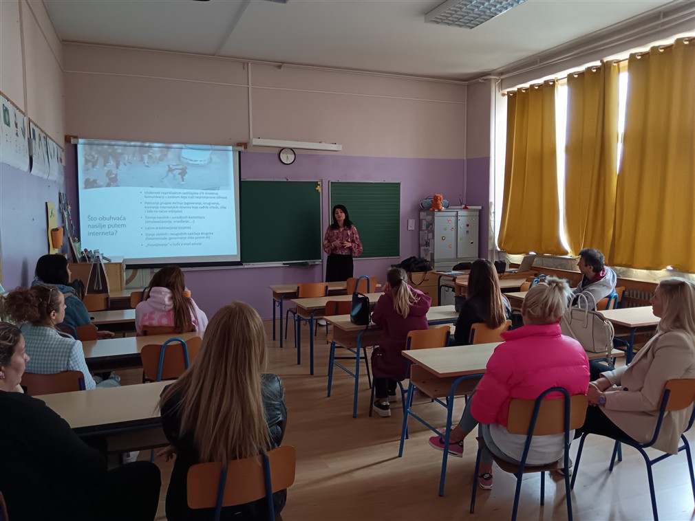 Dana 9.4.2026. u našoj je školi draga suradnica i policijska službenica Nives Kajfeš Grčko održala predavanje za roditelje u sklopu preventivne kampanje #sigurniONLINE. To je nadogradnja postojećih preventivnih aktivnosti kojom se upozorava odrasle na rizike nekontroliranog korištenja digitalnih tehnologija od djece te osnažuje kultura odgovornog i sigurnog ponašanja djece na internetu, posebice osnovnoškolskog uzrasta, 3. do 6. razreda.