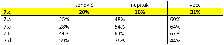 Čestitamo 7.c razredu jer je po postotku u ova dva tjedna bacio najmanje hrane!